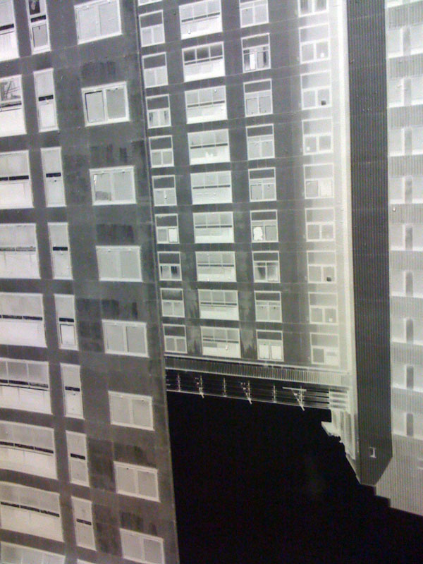 These pinholes were made during the Red Road Flat Obscura project. I converted the kitchen into a make shift darkroom and ran pinhole workshops with the local community during the Easter holidays, 2009.